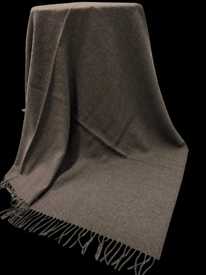 Kaschmir Sofaplaid in dunkelbraun oder braun-melliert mit Fransen von Steinbeck