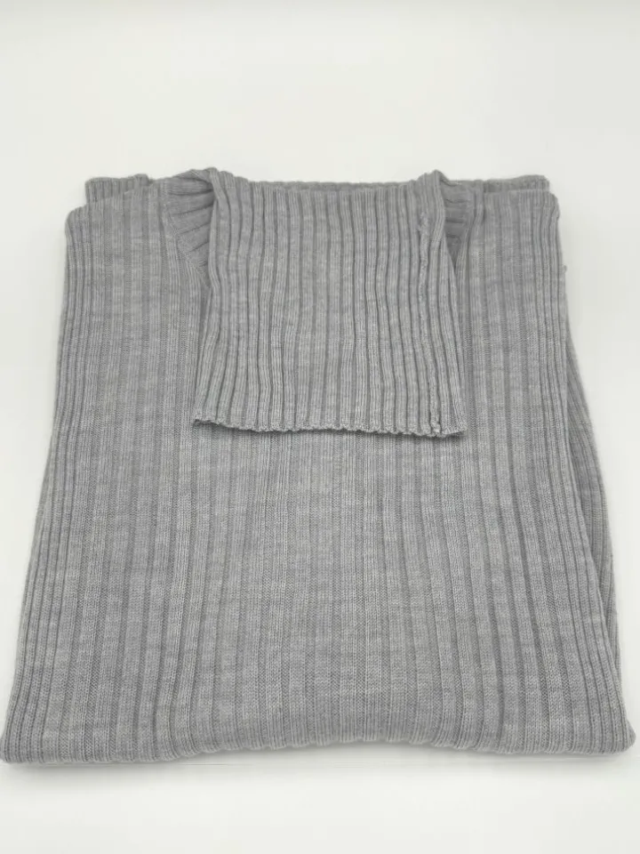 Das Grundmaterial dieser Serie ist ein blickdichter, gerippter Strick, der weich und angenehm zu tragen ist. Er wirkt temperaturausgleichend, knittert kaum und trocknet schnell. Wolle temperiert im Winter und der Übergangszeit und ist daher perfekt zum Kombinieren.
