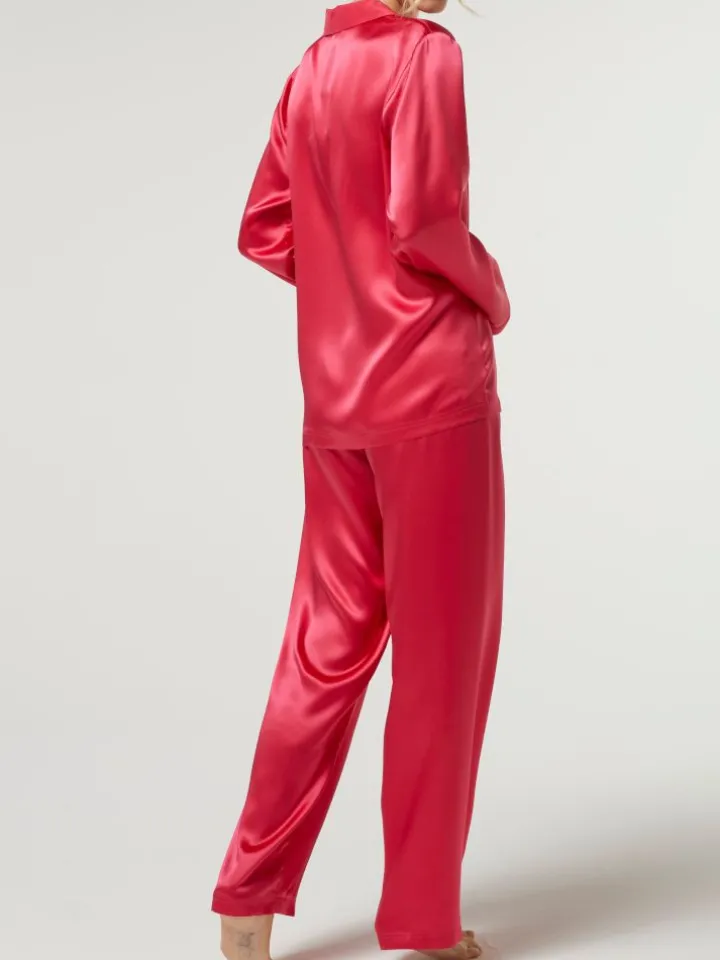 Dieser elegante Seiden-Schlafanzug ist aus hochwertigem Seidensatin (100 % Seide) gefertigt. Der edle Damenpyjama aus echter Seide ist weich, hautsympathisch und mit edlem Glanz. Er ist in klassischen und modischen Uni Farben erhältlich, wie z.B. schwarz, weiß, rot oder gold. Der Seidenpyjama aus der Basic Seidenwäsche Serie des italienischen Nachtwäsche Labels Vivis ist jede Saison in neuen Farben erhältlich und in Basic Farben nachbestellbar.