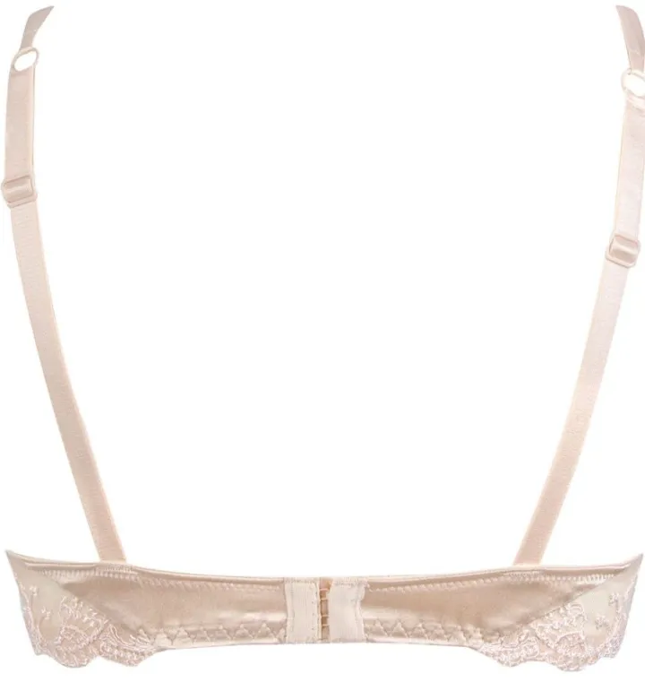 Der bezaubernde BH hat wattierte 3/4 Schalen mit Bügeln. Da die Cups gefüttert sind sorgen sie für ein angenehmes und sicheres Tragegefühl. Die Cups sind aussen größtenteils aus der feinen Seide. Der Rand der Cups ist aus dem feinen Tüll, welcher mit hochwertigen Stickereien versehen ist. Vorne am Mittelsteg ziert eine kleine Schleife mit Zierstein den zauberhaften BH. Hinten und an den Seiten besteht der BH aus dem bestickten Tüll, wobei hinten ein kleiner Seideneinsatz eingefügt wurde, um den BH abzurunden. Die verstellbaren Träger aus Satin sind vorne doppelläufig und hinten längenverstellbar. Dieses edle Zusammenspiel der unterschiedlichen Materialien und Akzente formt sich zu einem unwiederstehlichen Bügel BH, der sowohl für den Alltag als auch für besondere Anlässe perfekt geeignet ist. Aus dieser zarten Kollektion gibt es weitere, ergänzende Kombinationsteile seperat in unserem Shop.