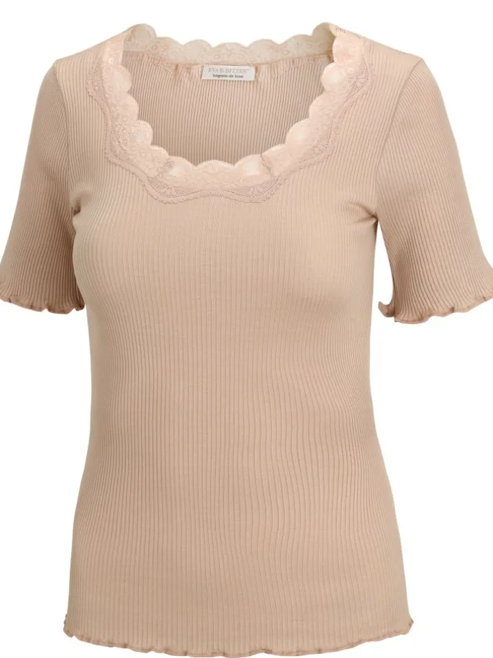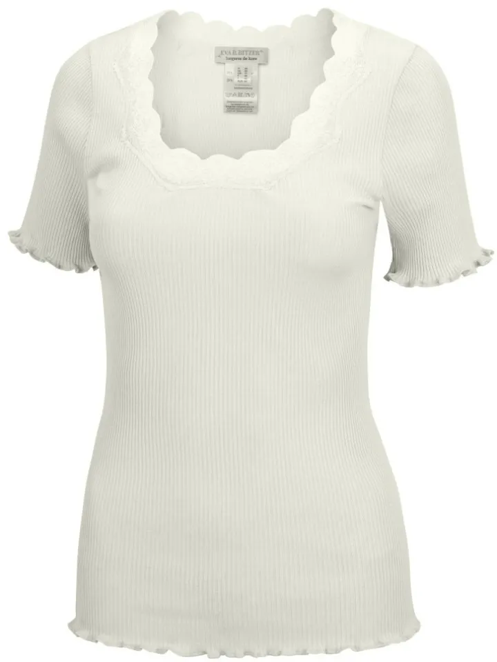 Die Hochwertigkeit des Stoffes (70% Seide, 30% Baumwolle) wird durch den zeitlosen Schnitt und die Verzierung mit floraler Wäschespitze (100% Polyester) unterstrichen. Das Unterhemd hat kurze Ärmel und eine unkomplizierte Passform. Es kann als Oberbekleidungsteil, Unterwäsche oder auch als Nachtwäsche und Homewear getragen werden.