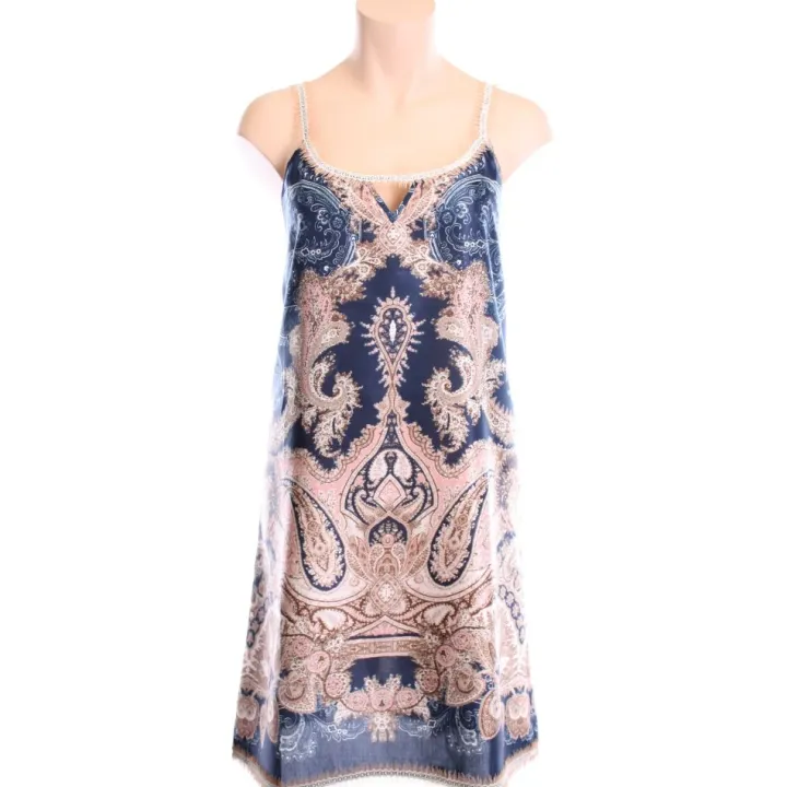 Das Nachthemd mit Spaghettiträgern von Gattina besteht aus fein glänzendem Seidensatin (65% Baumwolle, 35% Seide). Es hat einen Druck in gold, rosé und dunkelblau und ist in in den Größen 36 bis 44 (deutsche Damenkonfektionsgrößen) erhältlich. Ausverkaufte Größen sind hier nicht nachbestellbar. Dieses Trägernachthemd mit einer Gesamtlänge von ca. 90 cm kann als Nachthemd, Kleid oder Strandaccessoir getragen werden.