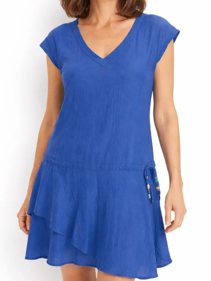 Die Strand-Tunika Hollist von Exilia besteht aus sommerlich- leichtem, weichem Baumwoll-Crepe und ist die perfekte Ergänzung zu der Bademode der Kollektion „Happy Hours“ von Exilia Mare. Diese Tunika hat einen weit schwingenden Saum, der teilweise als assymetrische Volants doppelt genäht ist. Oberhalb kann der Rock durch ein eingenähtes Bindebändchen mit Schmuckelementen etwas gerafft werden.