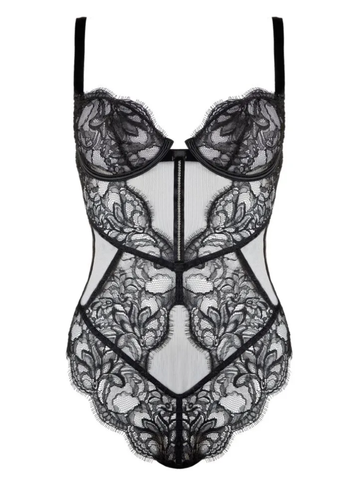 Der atemberaubende Lingerie Body von Prelude Milano ist Spitzenwäsche Made in Europe. Das edle Teil besteht aus Eye-Lash-Spitze, feinem Tüll und schmeichelndem Satin. Der Spitzen-Body hat verstellbare Spaghettiträger und Cups mit Bügeln. Aufgrund des verarbeiteten Materials ist dieser Body semitransparent.