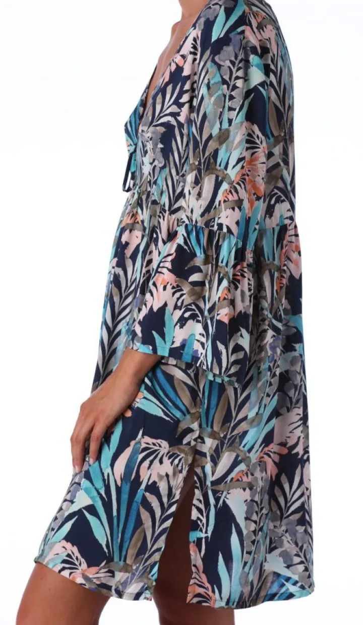 Die Strandmode von Ritratti Mare vereint ausgefallene Stoffe und eine edle Verarbeitung mit einem eleganten, italienischen Design. Der Kaftan Seychelles in blau ist aus 100% Viscose in einer angenehmen Jersey-Qualität verzaubert durch ein schönes florales Muster. Der Kaftan hat einen V-Ausschnitt, der mit einem Bändchen verziert ist. Das Kleid hat am Saum auf beiden Seiten Schlitze.