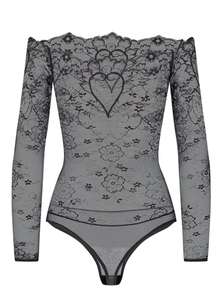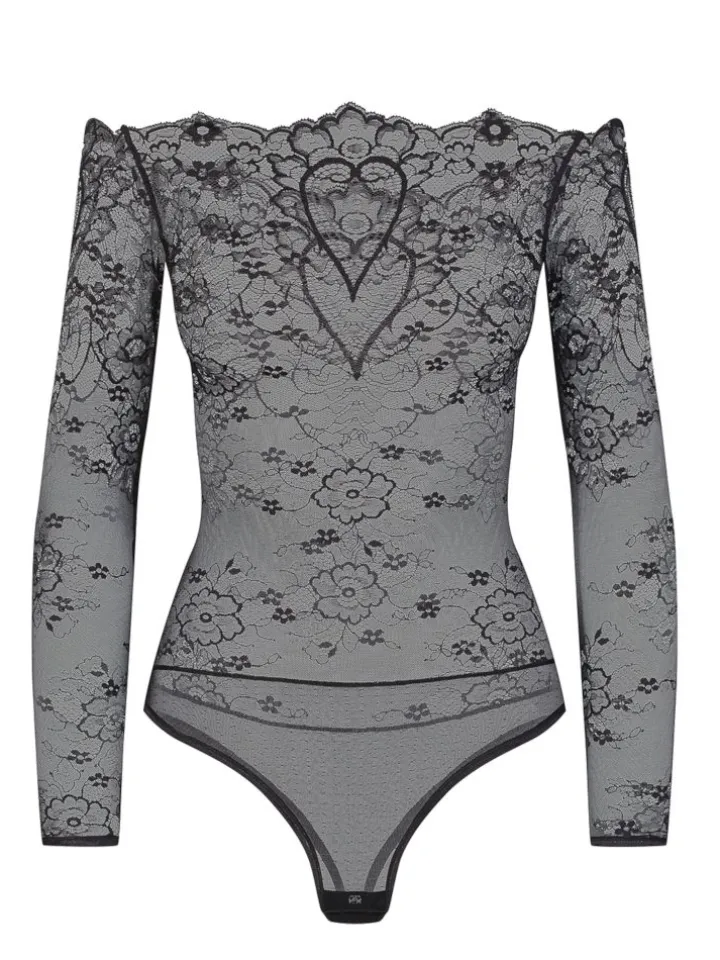 Langarm Body Coeur aus Spitze schwarz von Cadolle