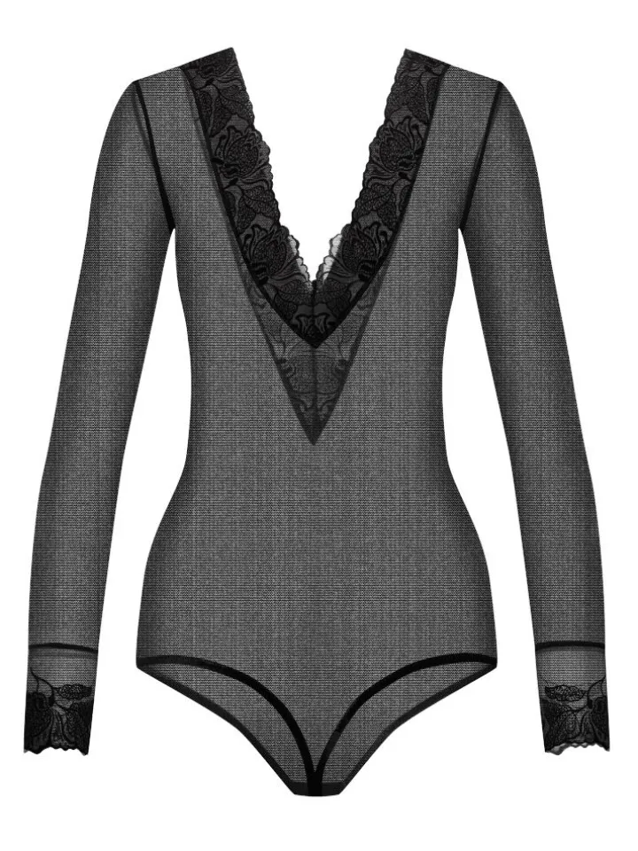 Langarm Body Tulipe aus Tüll schwarz von Cadolle