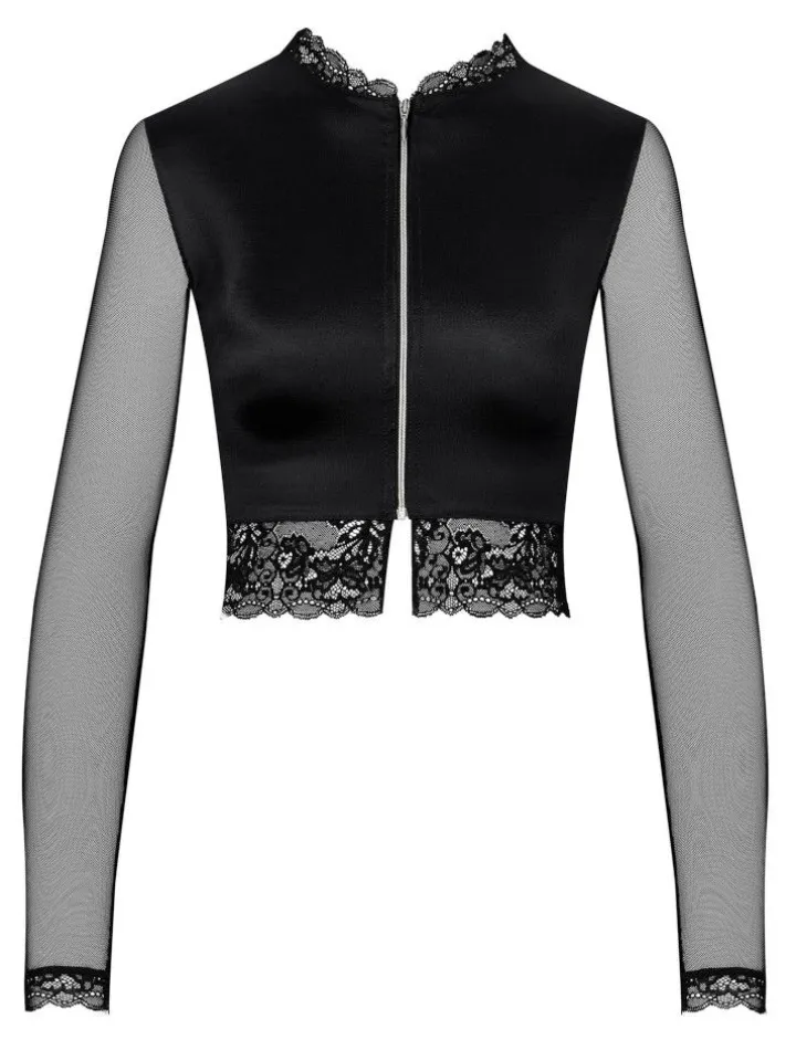 Langarm Minitop Diamant aus Satin schwarz von Cadolle