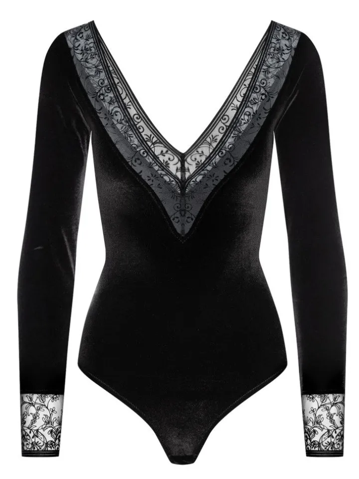 Langarm Body Floqui aus Samt schwarz von Cadolle