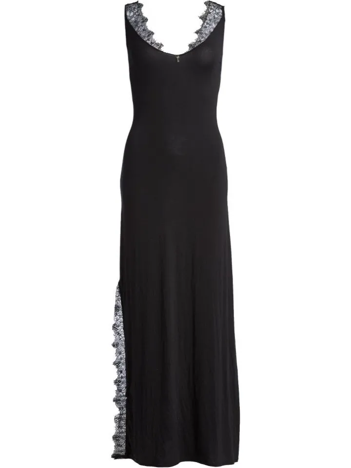 Dieses Nachtkleid ist in den Größen XS (36) bis XXL (46) erhältlich in der Farbe schwarz.