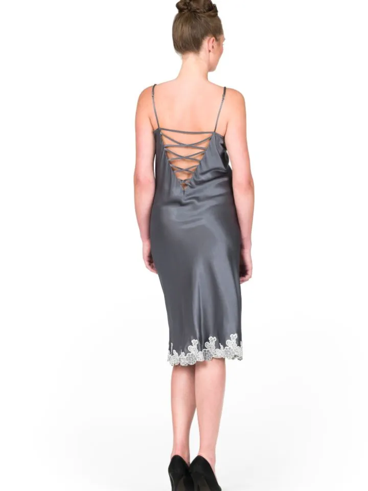 Seidennegligé Sakhali antrazith mit Spitze von Gattina – 1B-Ware