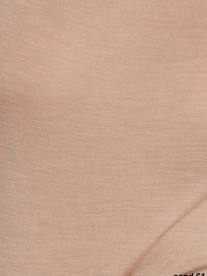 Das Grundmaterial dieser Wäsche Serie ist ein glatter, rundgestrickter Jersey, der in klassischen Farbtönen hergestellt wird. Dieses Material ist hautsympathisch, angenehm zu tragen und hat einen zarten Schimmer. Wolle-Seide wirkt temperaturausgleichend, knittert nicht und trocknet schnell. Sie wärmt im Winter und ist ausgleichend in der Übergangszeit. Außerdem ist dieses edle Material leicht elastisch und passt sich daher gut der Körperkontur an. Da diese Unterwäsche aus einer rundgestrickten „Schlauchware“ gefertigt wird, ist das Top seitlich nahtlos.