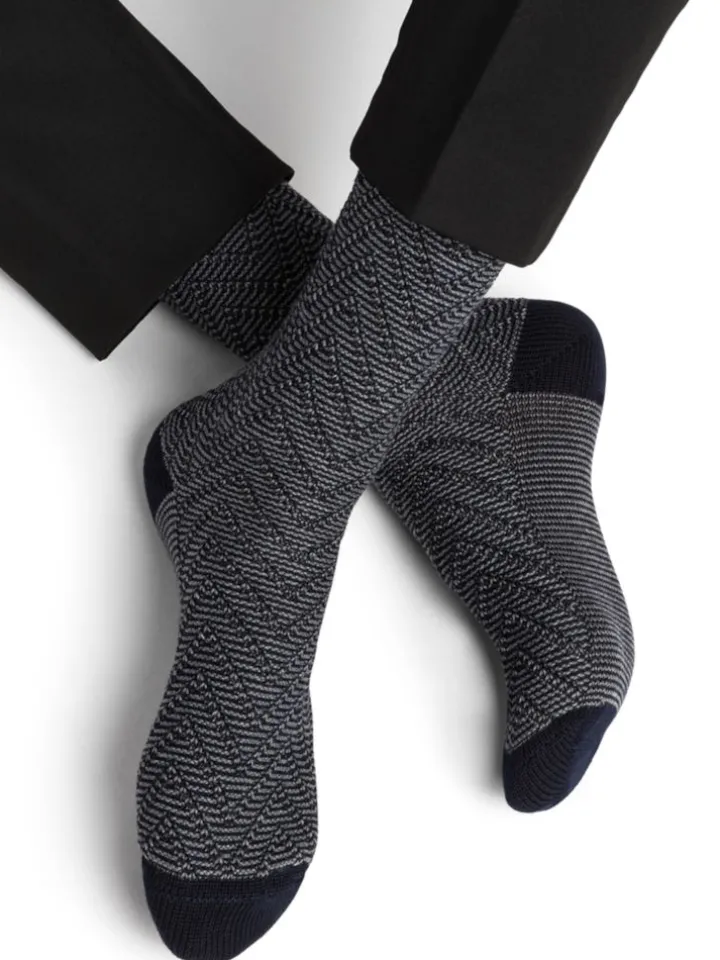 Herren Merinowolle Socken rustikal von Bleuforêt mit Muster