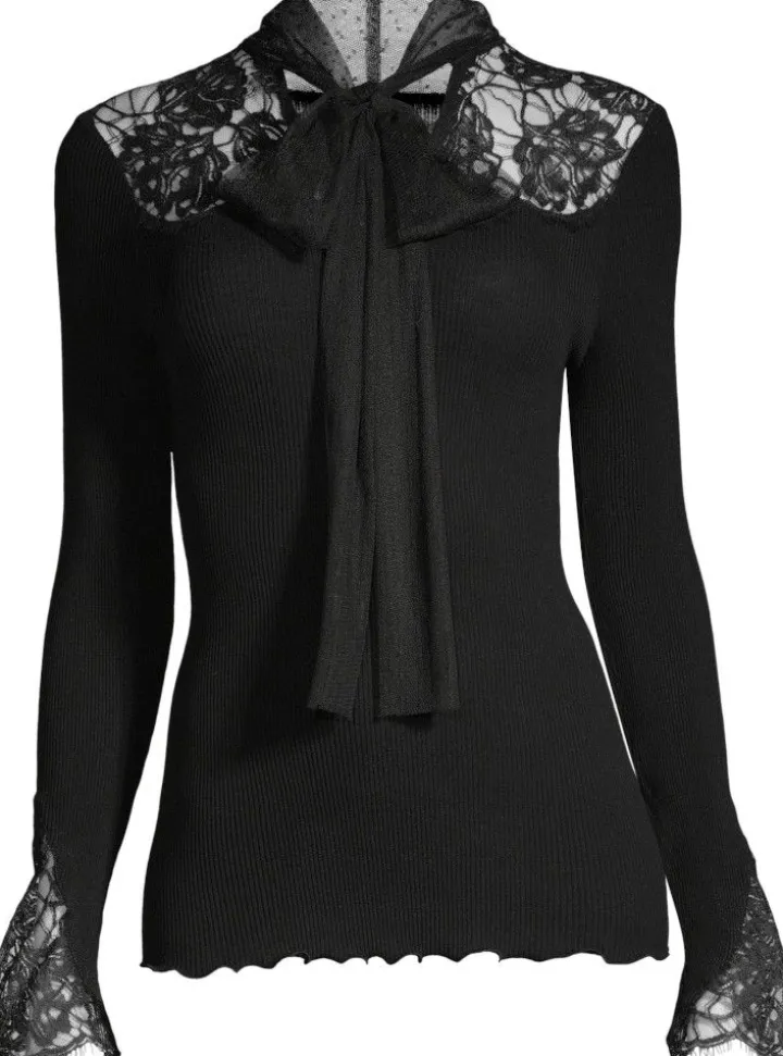 Merinowolle-Seide Langarm-Shirt mit Schleife schwarz von Oscalito