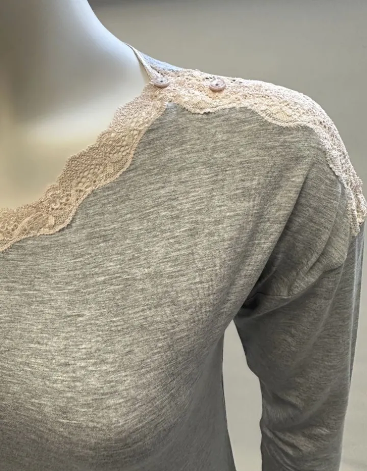 | Merkmale | blickdicht, Langarm, mit Spitze, Materialkombination |