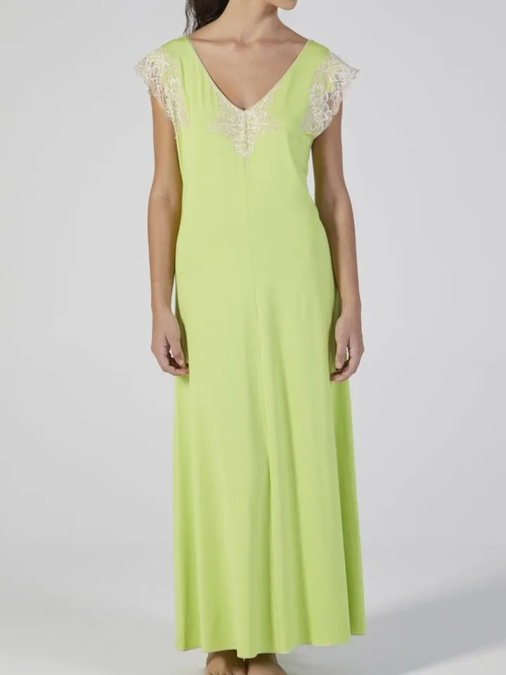Modal Neglige lang Kiwi grün mit Spitze von Verdiani