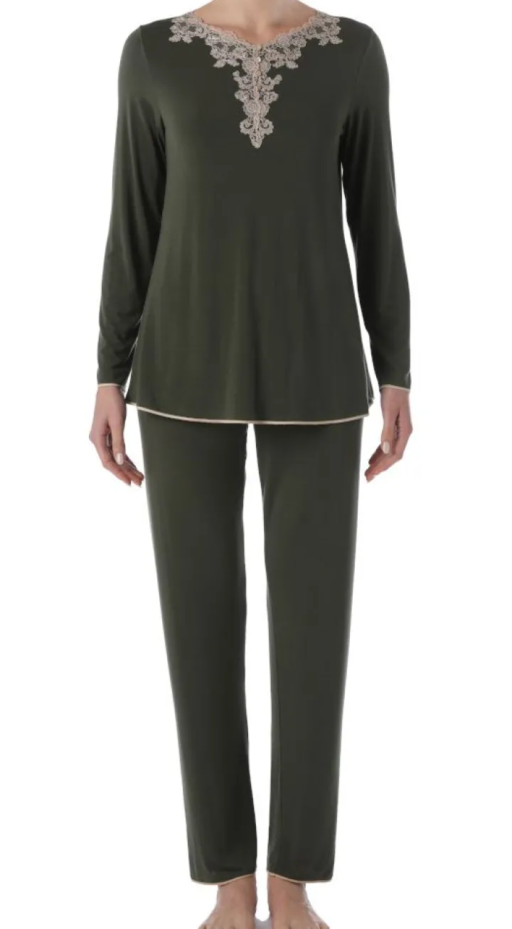 Olivgrüner Pyjama Charlotte aus Modal Feinjersey von Imec