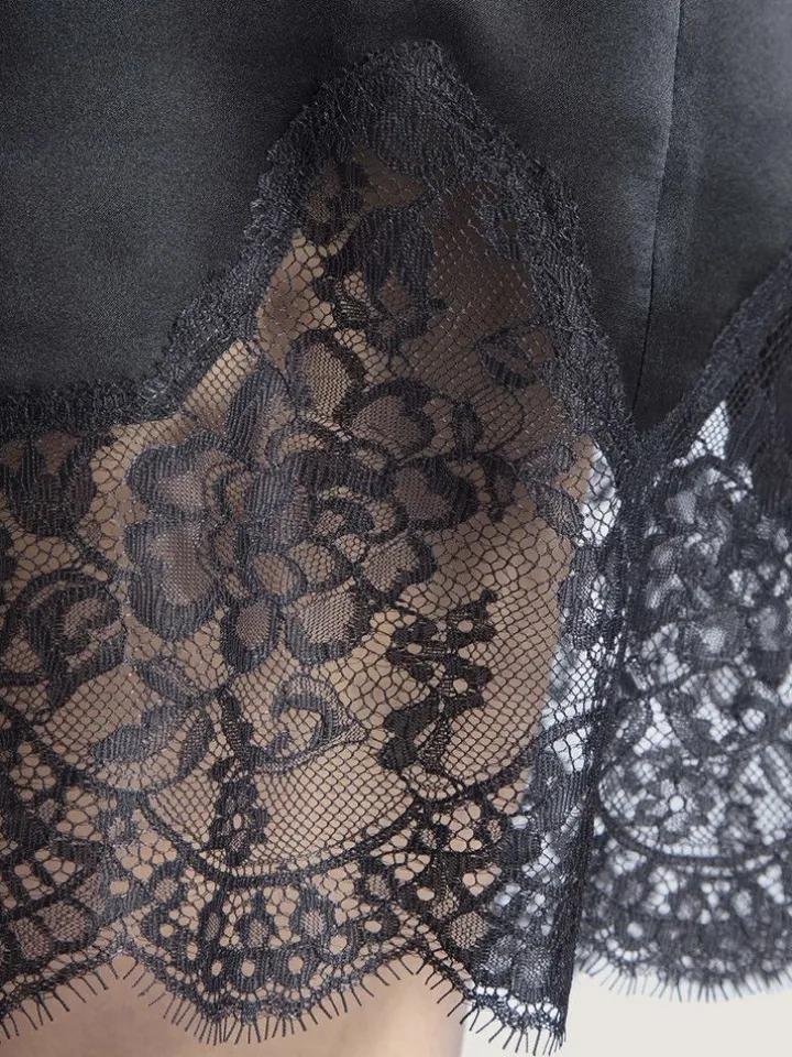 | Material Stoff | Satin: 100% Seide, Spitze: 100% Polyamid |