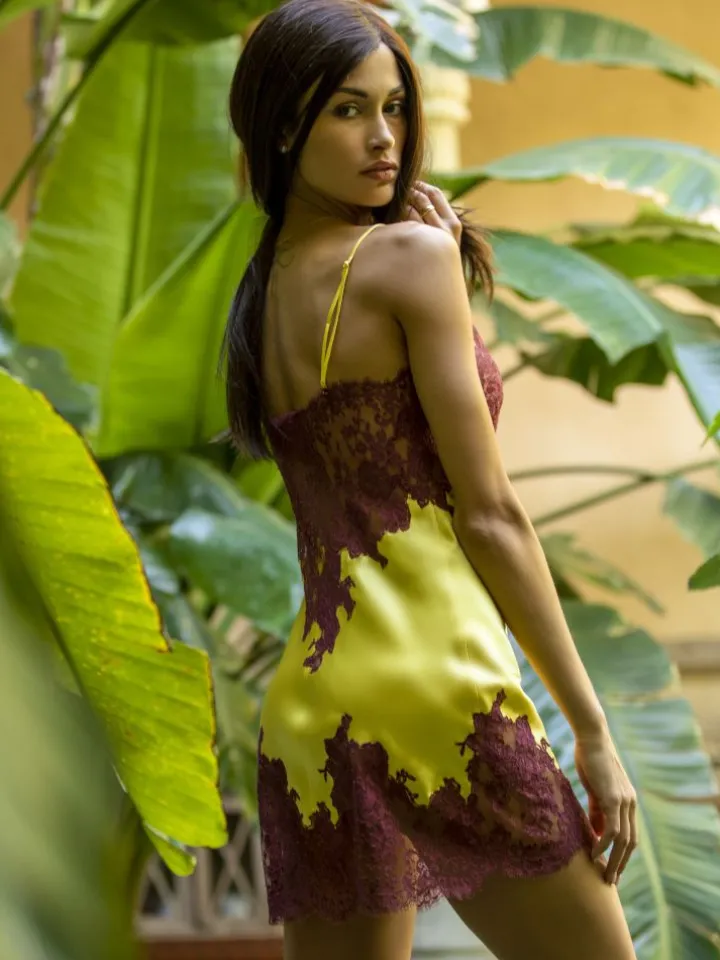 Marjolaine ist eine exklusive Marke aus Frankreich, die sich auf die Herstellung edler Negligés aus Seide und feinster Spitze spezialisiert hat. Seit ihrer Gründung hat sich die Marke einen Ruf für ihre unvergleichliche Qualität, ihr raffiniertes Design und ihre sinnliche Eleganz erworben. Marjolaine verkörpert die perfekte Symbiose zwischen Luxusmaterialien und handwerklicher Meisterleistung und ist weltweit bekannt für ihre exquisiten Kreationen mit inkrustierter Spitze. Die Verwendung von Seide, einem der edelsten und luxuriösesten Stoffe, macht Marjolaine Lingerie zu etwas Besonderem. Die sinnliche Textur und der schimmernde Glanz der Seide in den schönsten Farben verleihen jedem Negligé eine einzigartige Eleganz und Zartheit. Jedes Stück wird mit größter Sorgfalt und Präzision handgefertigt, um sicherzustellen, dass die Schönheit des Materials voll zur Geltung kommt und eine luxuriöse Bereicherung der Wäscheschublade bietet. Die Verwendung von französischer Spitze ist ein weiteres charakteristisches Merkmal von Marjolaine Lingerie. Die Spitze stammt von einigen der namhaftesten französischen Manufakturen z.B. aus Calais und verleiht den Kreationen eine romantische und verführerische Note. Die kunstvollen Spitzenverzierungen, die in den Seidensatin eingearbeitet sind, sind ein Fest für die Sinne und verleihen jedem Stück eine besondere Aura und Raffinesse.