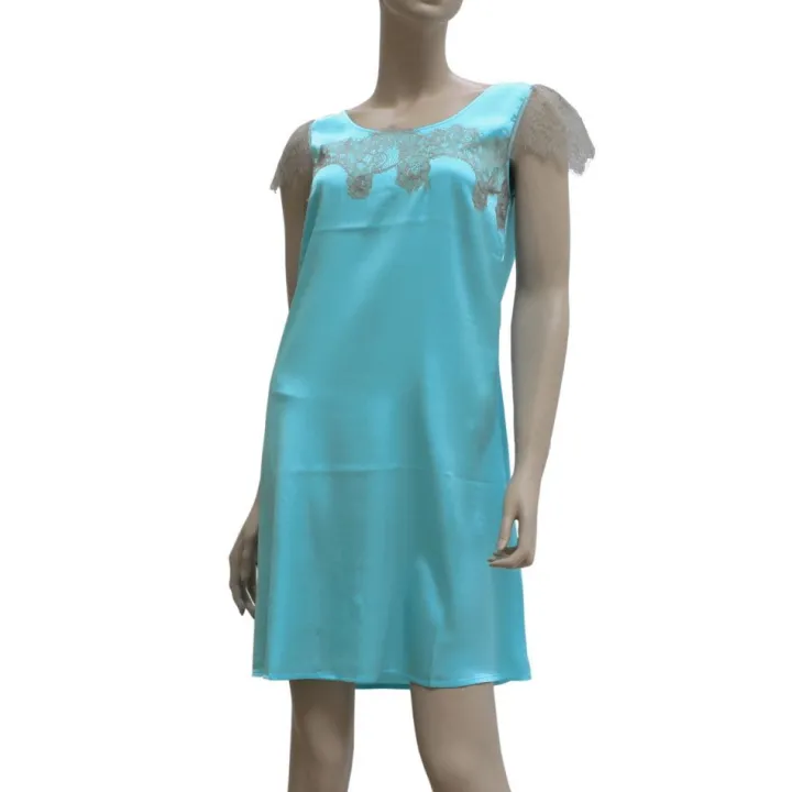 Seidennachthemd Desiderio Aqua mit Spitze von Gattina