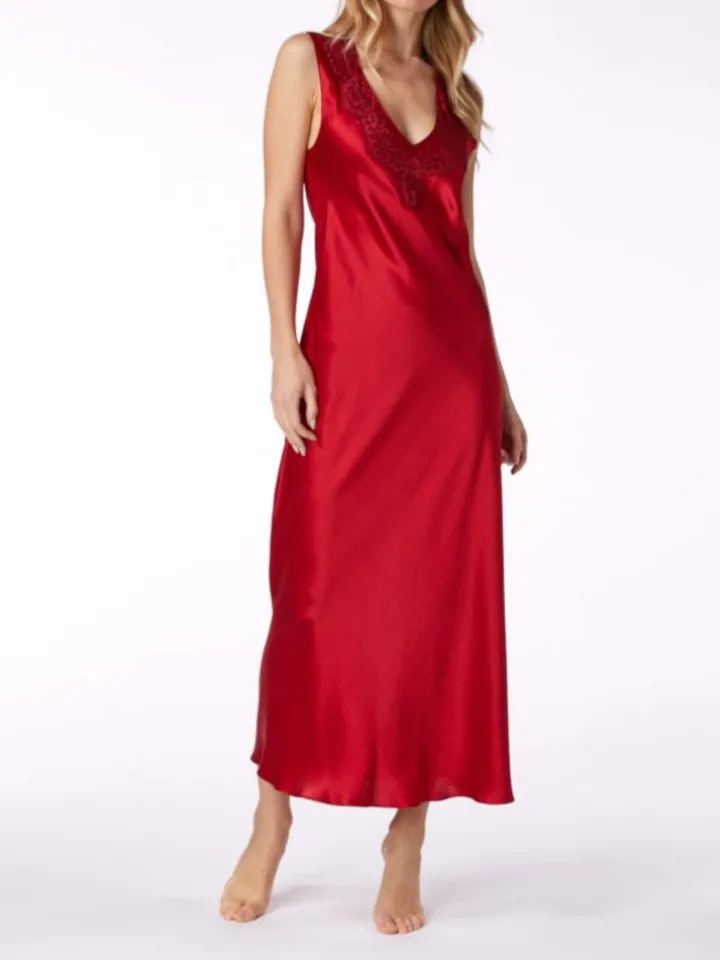 Das Seidennachthemd hat nicht verstellbare, breite Träger. Bei uns ist dieses Neglige in S bis XXL erhätlich in der Farbe „tango red“. Die Farbe „tango red“ entspricht einem kräftigen rot. Da das Teil zur modischen Kollektion von Vivis gehört, sind ausverkaufte Größen leider nicht nachbestellbar.