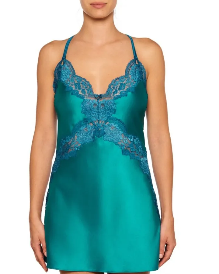 Das Negligé Adriana ist eine luxuriöse Seidenwäsche der französischen Edel-Dessous Marke Millesia. Das seidene Nachthemd ist auf beiden Seiten geschlitzt und vorne und hinten reichlich mit weicher Wäschespitze verziert. Die Träger sind in der Länge verstellbar und im Rücken zusammengefasst – so können die Träger nicht von der Schulter rutschen.