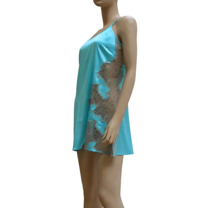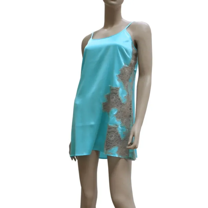 Seidennegligé Desiderio Aqua mit Spitze von Gattina