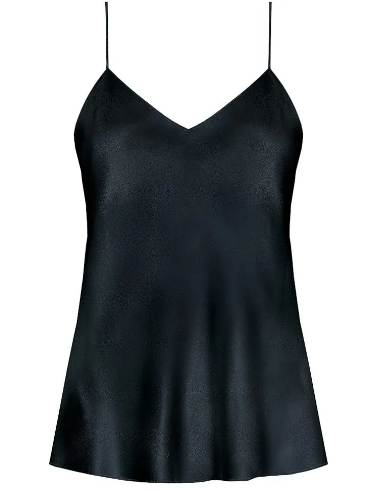 Dieses Seiden-Top mit Spaghetti-Trägern ist in den Größen S bis XL erhältlich (entspricht etwa den deutschen Damengrößen 36 bis 42). Es fällt exakt aus.