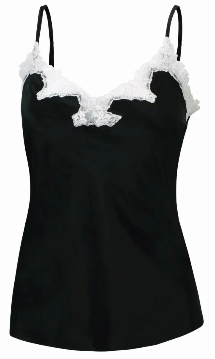 Das Top ist ca. 60 cm lang und mit verstellbaren Spaghettiträgern ausgestattet. Es ist eine verführerische Seidenwäsche und als Oberbekleidung oder Schlafwäsche verwendbar. Das Grundmaterial dieser Serie ist der glänzende Seidensatin, den Eva B. Bitzer auch für die klassische Basis-Kollektion verwendet. So sind die Wäscheteile der Satin & Lace Serie mit den einfarbig schwarzen oder naturweißen Teilen der Klassik Kollektion kombinier- und ergänzbar.