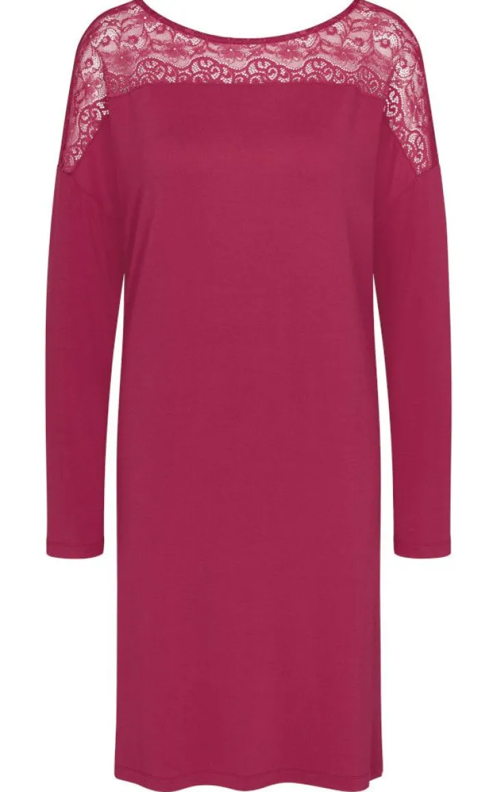 Das Sleepshirt ist in der Farbe himbeer rot erhältlich in den Größen 38 bis 48.