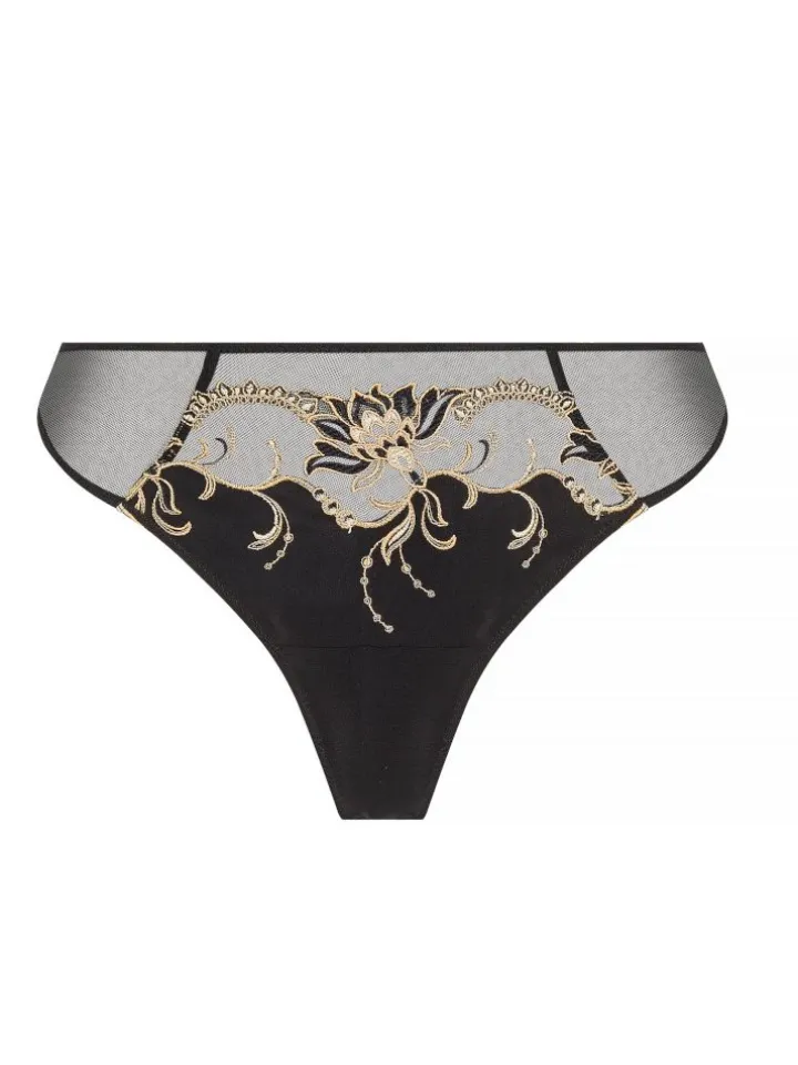 Der elegante Slip Eblouissante Icone von Lise Charmel ist aus glänzenden Stretchseidensatin, floraler Spitze und Tüll (42% Seide, 29% Polyamid, 11% Baumwolle, 10% Polyester, 8% Elasthan) gefertigt. Dieser verführerische Slip ist knapp geschnitten, geschlossen und halbtransparent. Der Innenzwickel ist aus Baumwolle. Ganz besonders ist die elegante Kombination aus einer goldenen Blumenspitze und feinem Tüll.
