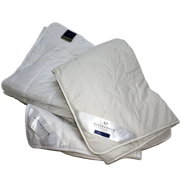 Diese leichte Sommer-Seidendecke hat eine Füllung aus 100% Wildseide und einen Bezug aus reiner Baumwolle. Durch die temperatur- und feuchtigkeitsausgleichenden Eigenschaften der Seide, bietet diese Seidendecke ein besonderes trockenes und optimal temperiertes Schlafklima im Sommer, bei gleichzeitig optimalem Feuchtigkeitstransport. Diese Eigenschaften sorgen dafür, dass die Billerbeck Sommer-Seidendecke einen ruhigen Schlaf in warmen Sommernächten unterstützt.