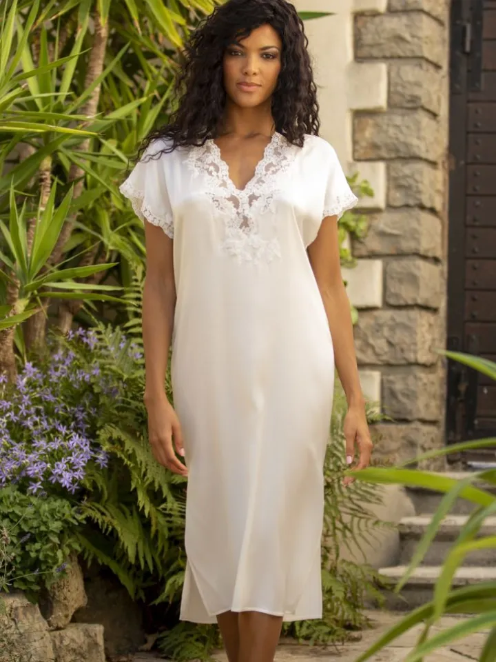 Seide Nachtkleid Reine mit Spitze von Marjolaine mittellang
