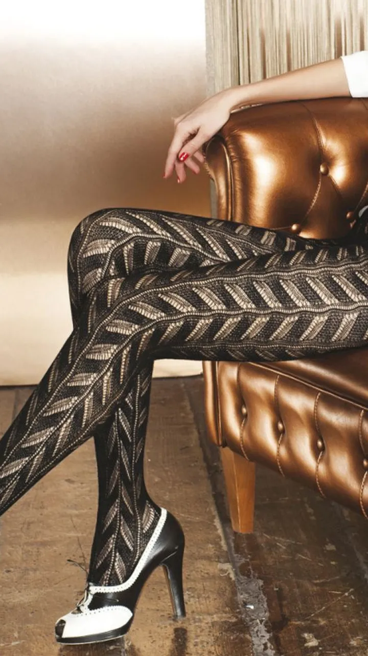 Wolle Strumpfhose Acquamarina mit Häkel-Look von Trasparenze