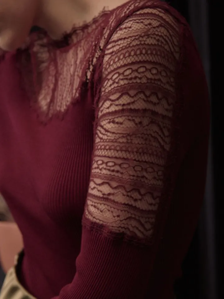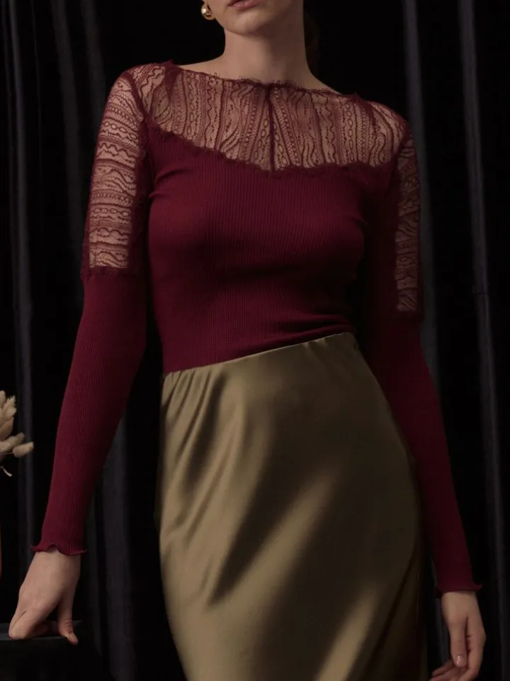 | Merkmale | blickdicht, Langarm, mit Spitze, Materialkombination |
