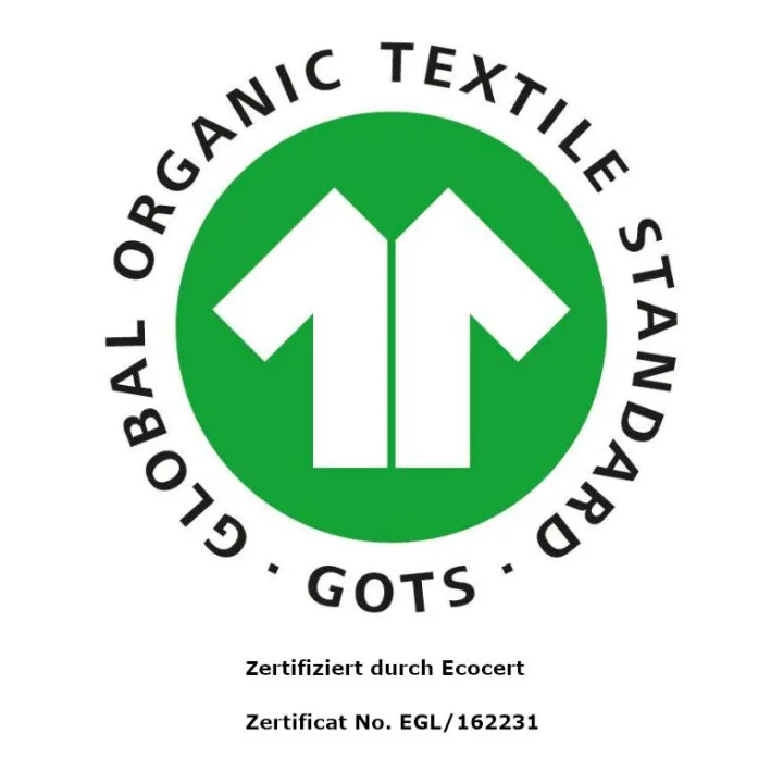 Die Bio-Seide ohne jegliche Ausrüstung ist GOTS zertifiziert (Certification No.: 29437) und nach dem Eco-Color System gefärbt (synthetisch).
