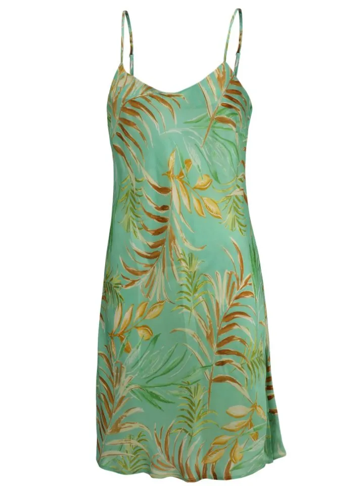 Das Seidenkleid Leandra kann als Nachtwäsche getragen werden. Dieses Nachthemd ist ungefähr 90 cm lang. Es ist in den Farben grün und apricot erhältlich.