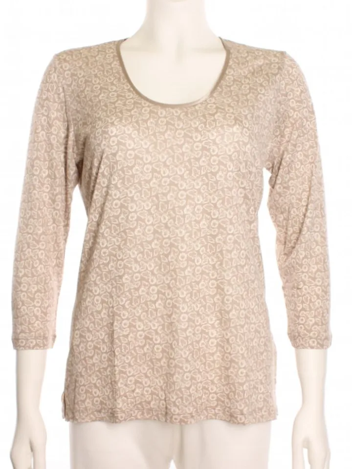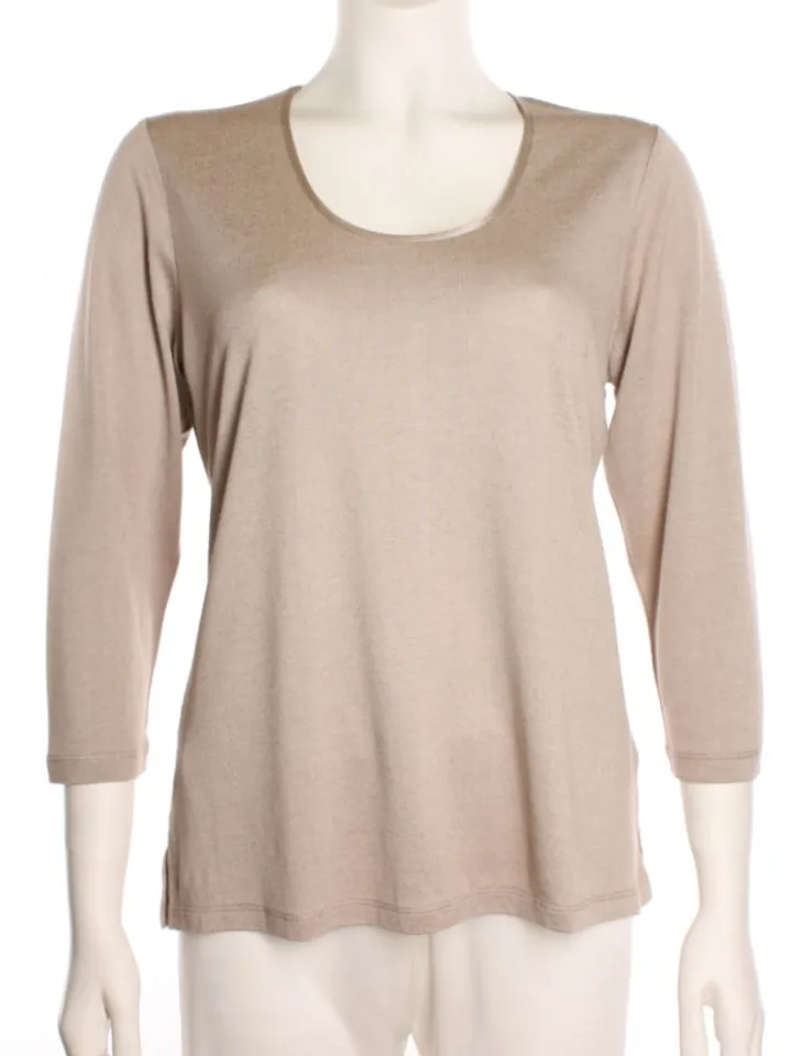 Die Hochwertigkeit des Stoffes mit einem Seidenanteil von 43% wird durch den schlichten und eleganten Schnitt unterstrichen. Das Shirt hat 3/4 lange Ärmel und eine unkomplizierte Passform. Am Saum ist es beidseitig ca. 5 cm hoch geschlitzt. Der Rundhalsauschnitt ist mit glänzendem Satin aus Seide eingefasst. Dieses Seidenshirt ist perfekt für den Sommer und kann als Oberbekleidungsteil oder auch als Homewear getragen werden.