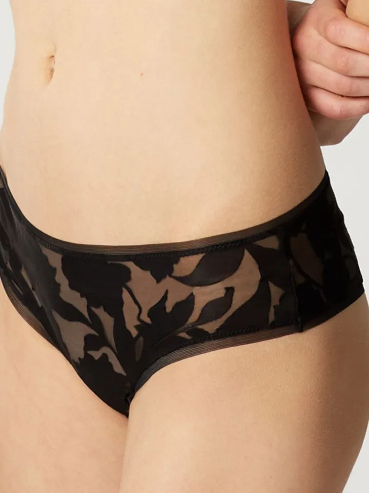 Der Tanga Panty Venus ist eine hochwertige Lingerie der französischen Edel-Dessous Marke Maisonlejaby. Der Tanga Panty ist hinten etwas knapper geschnitten. Er ist aus Ausbrenner Tüll mit floralen Blütenmotiven gearbeitet. Die Ausbrennerware hat einen hohen Viscose Anteil und ist daher schön weich.