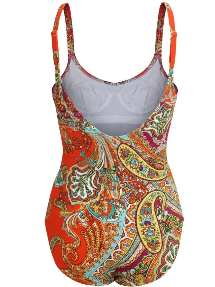 Diese Swimwear ist mit einem bunten Mustermix-Print aus floralen- und paisley Mustern bedruckt. Der Badeanzug ist bei uns in den Größen 38 bis 44 in einem B-Cup erhältlich. Den Badeanzug gibt es in türkis und rot. Da dieses Teil zur modischen Sommerkollektion von Fürstenberg gehört, sind ausverkaufte Größen leider nicht nachbestellbar.