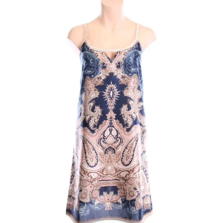 Das Nachthemd mit Spaghettiträgern von Gattina besteht aus fein glänzendem Seidensatin (65% Baumwolle, 35% Seide). Es hat einen Druck in gold, rosé und dunkelblau und ist in in den Größen 36 bis 44 (deutsche Damenkonfektionsgrößen) erhältlich. Ausverkaufte Größen sind hier nicht nachbestellbar. Dieses Trägernachthemd mit einer Gesamtlänge von ca. 90 cm kann als Nachthemd, Kleid oder Strandaccessoir getragen werden.