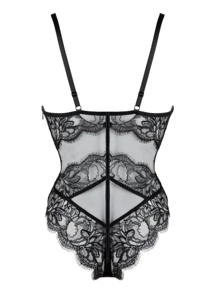 Der atemberaubende Lingerie Body von Prelude Milano ist Spitzenwäsche Made in Europe. Das edle Teil besteht aus Eye-Lash-Spitze, feinem Tüll und schmeichelndem Satin. Der Spitzen-Body hat verstellbare Spaghettiträger und Cups mit Bügeln. Aufgrund des verarbeiteten Materials ist dieser Body semitransparent.