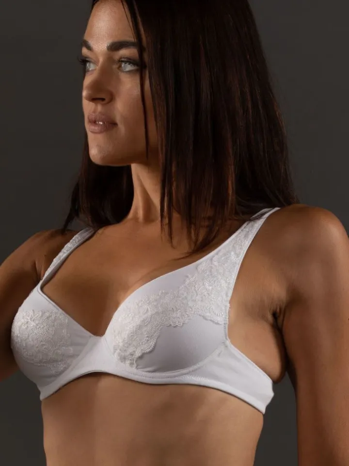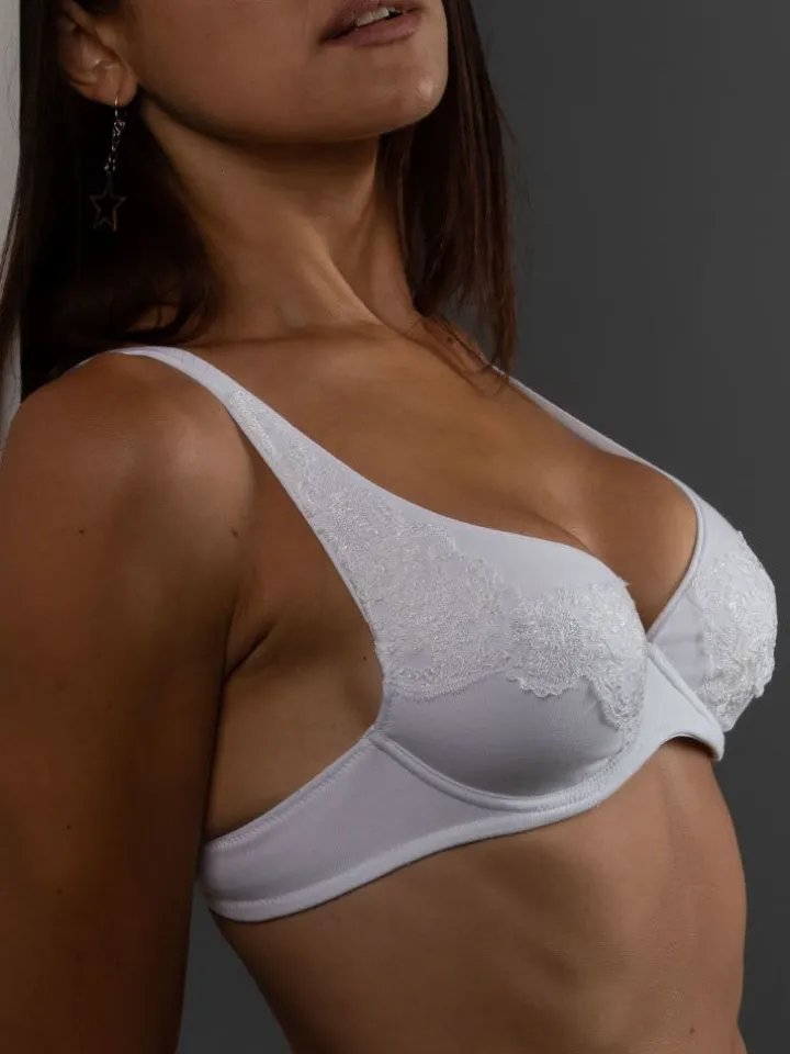Der Bügel-BH Velato von Cotton Club ist eine exquisite Baumwolle Damenwäsche der Luxus Klasse. Für dieses Dessous wird ein besonders hochwertiger und elastischer Baumwolle Jersey verwendet, der weich und hautsympathisch ist, in Kombination mit einer bestickten Tüllspitze. Die Teile der Cotone Candy Basic Kollektion sind vielfältig kombinierbar und nachbestellbar. Der Baumwolljersey besteht aus 94% Baumwolle und 6% Elasthan. Der Gehalt von Polyamid und Polyester in der Materialzusammensetzung stammt aus der verarbeiteten Tüllspitze.