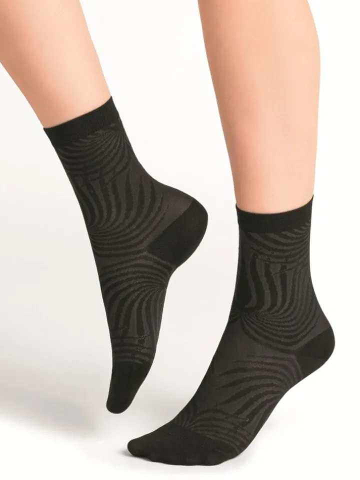 Diese kurzen Socken mit eingestricktem Tiger Streifenmuster sind in den Größe 36/38 oder 39/41 in den Farben schwarz oder weinrot erhältlich.