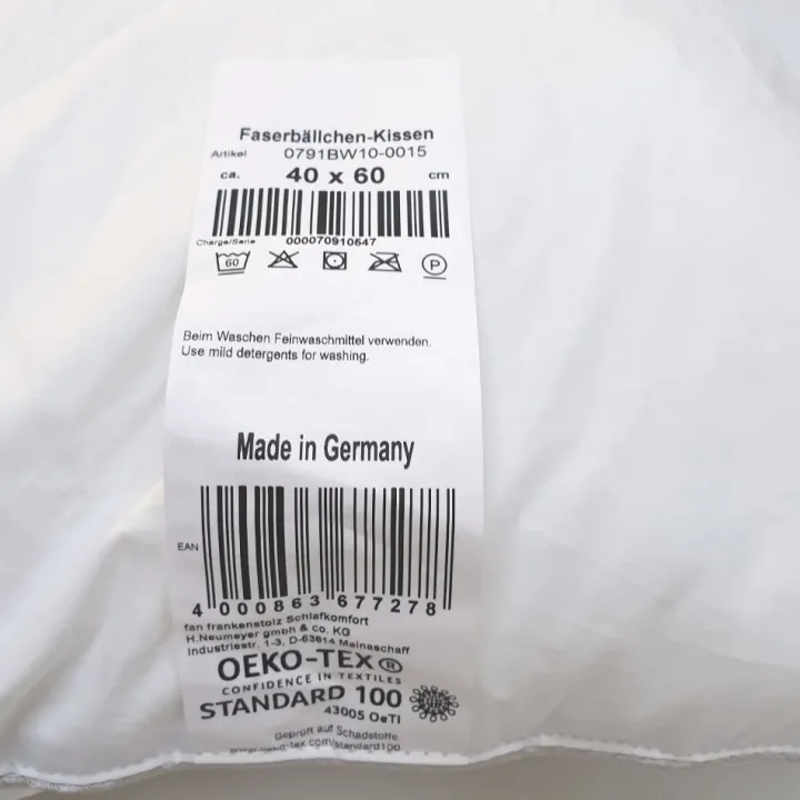 Das Kissen ist bei bis zu 60°C waschbar und auch für Allergiker geeignet. Außerdem ist dieses Kopfkissen schadstoffkontrolliert und zertifiziert nach ÖkoTex100. Hersteller ist f.a.n. Frankenstolz und das Kissen ist Made in Germany.