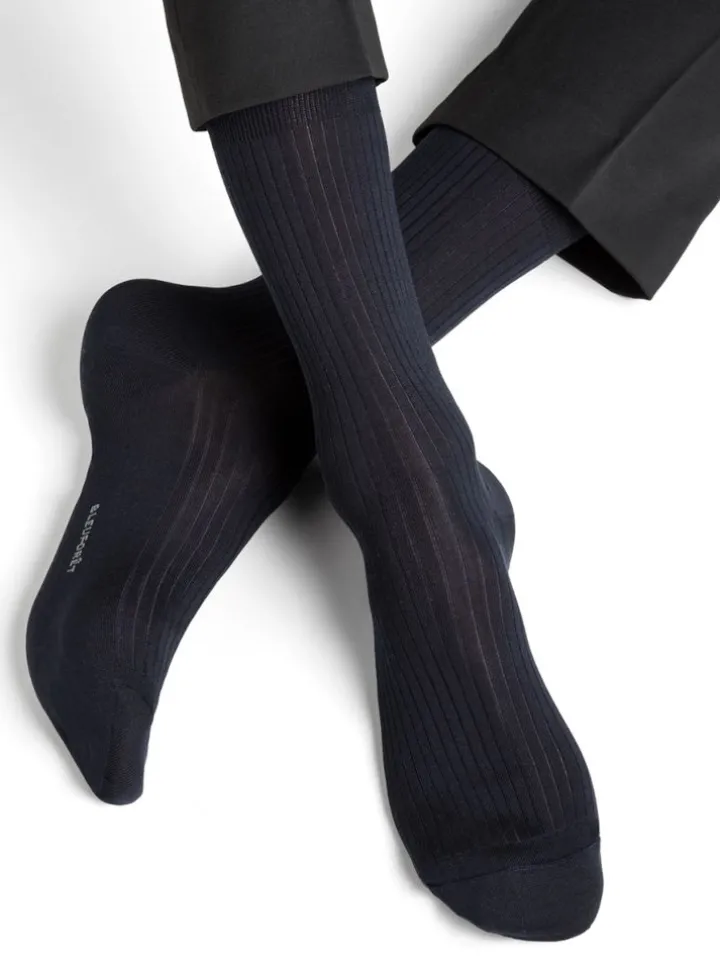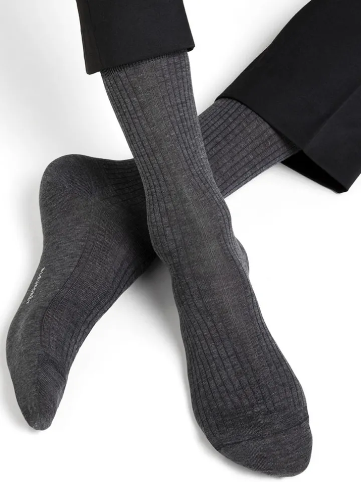 Herrensocken aus Seide bieten viele Vorteile: Seide ist ein von Natur aus weiches, aber auch wärmeregulierendes Material, das die Füße im Winter warm und im Sommer kühl hält. Für eine längere Haltbarkeit sind die Fersen und Spitzen dieser gerippten Seidensocken verstärkt, während die flachen Nähte für einen maximalen Tragekomfort sorgen.