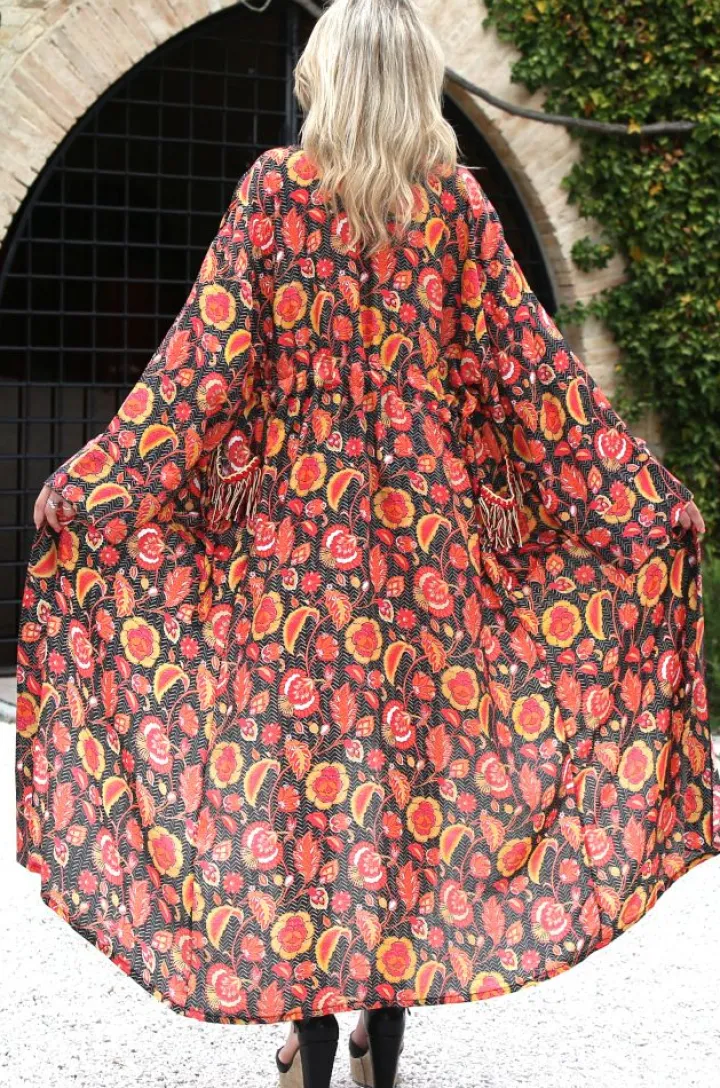 Kimono mit Seide AURORA schwarz-rot von Laetitia Beachwear