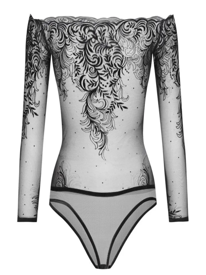 Langarm Body Arabesque aus Tüll schwarz von Cadolle