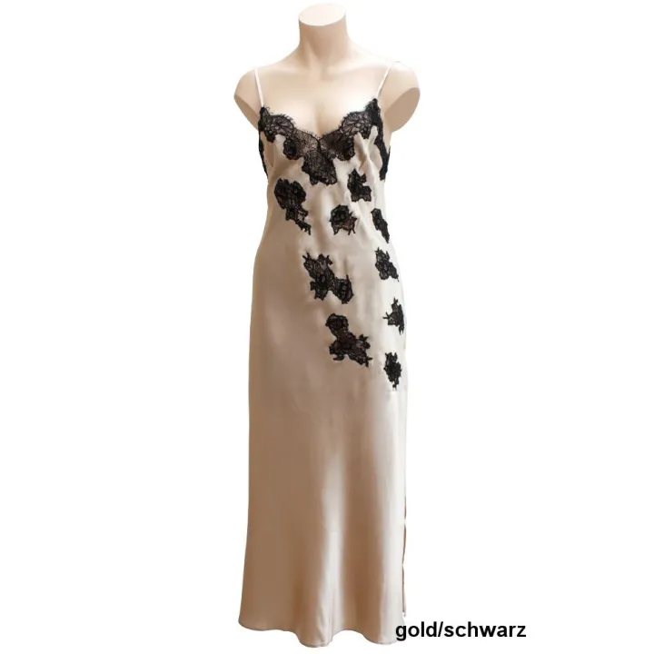 Langes Seidennegligé Starshine gold oder schwarz mit Spitze von Gattina