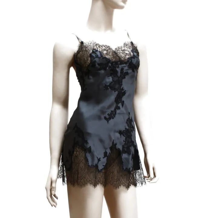 Ein kurzes Negligé der Luxusklasse ist das Seiden- Nachthemd Baccarat der französischen Edel-Marke Marjolaine. Der edle Seidensatin wurde mit exquisiter Spitze zu einer aufregenden Nachtwäsche verarbeitet.